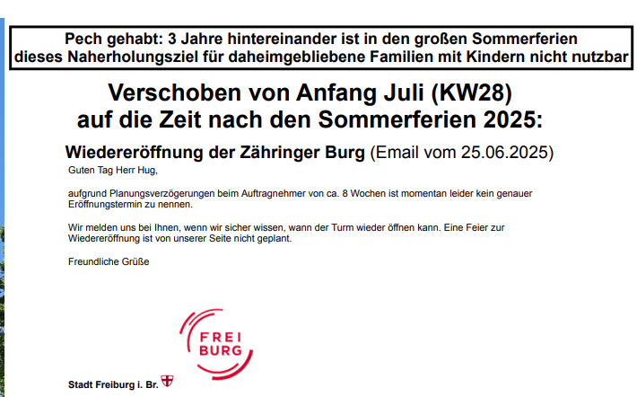 Ihr Team der Petition „Offenhaltung des Zähringer Burgturms“